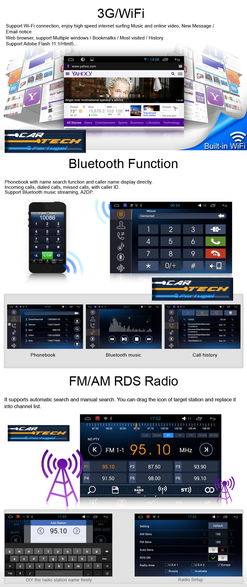 Bluetooth completa: Enviar / receber chamadas através do rádio do carro.Vá para o seu diretório e registro de chamadas, números de marcação, levante pendurar (volante compatível).Quando uma chamada é recebida ou emitida em seu Bluetooth assume automaticamente precedência sobre as outras funções, incluindo GPS.